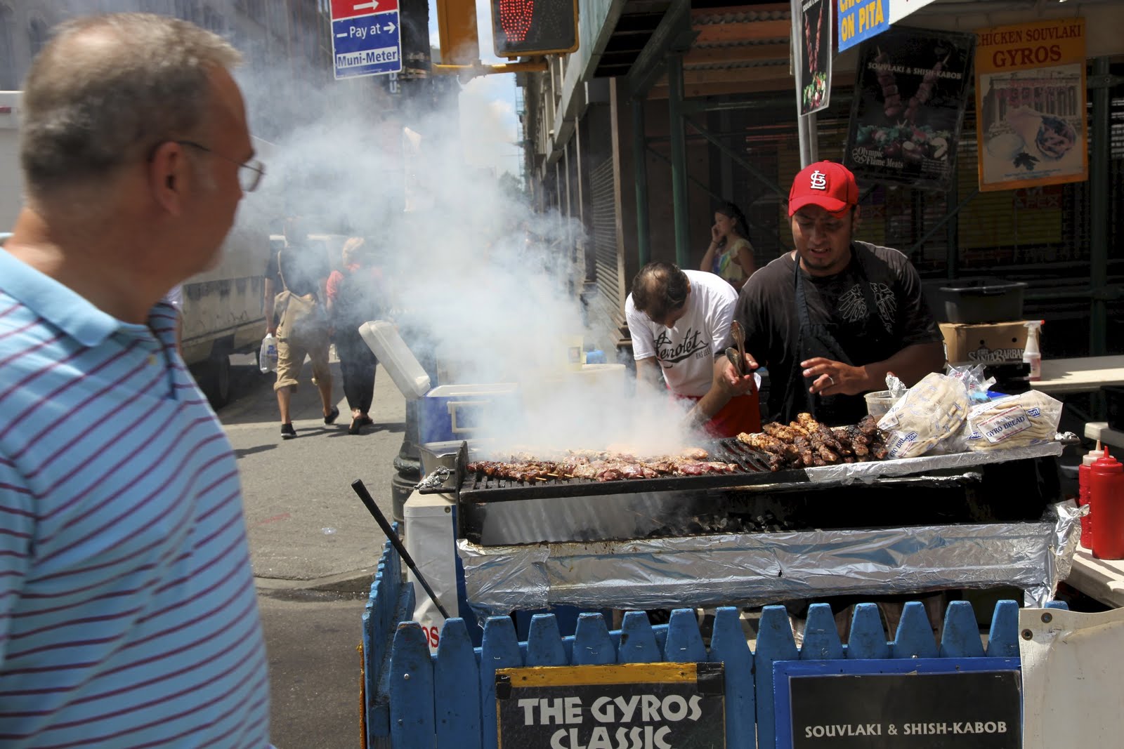 La 6th avenue era infatti chiusa per circa dieci isolati e i banchetti che vendevano cibo occupavano almeno la meta` dei posti disponibili . Cibo Greco, Thai,Francese, Colombiano etc etc , il caratteristico odore delle carni alla brace, dei noodles saltati nel wok ,assieme al fritto delle mozzarelle in carrozza, del profumo di paella , si diffondevano nell`aria creando il perfetto meltin pot newyorkese. In poco meno di un chilometro , il mondo e la sua principale cultura ( la cucina) erano armoniosamente rappresentati .
