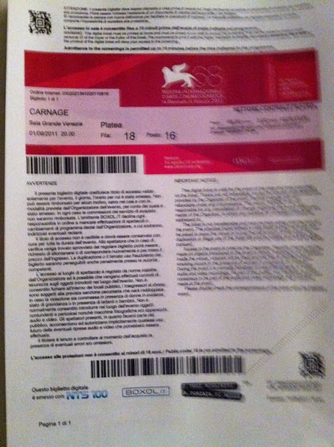 Inoltre, i films che vedro' saranno quelli piu' "cool" , nel senso quelli piu' attesi dagli appassionati (come me)e dai critici, nell'ordine : "Carnage" di Roman Polansky, "A dangerous method" di David Cronenberg, "Tinker,tailor,soldier,spy" di Tomas Alfredson, "Killer Joe" di William Friedkin. Ed ovviamente con cast di attori eccezionali. Te li elenchero' giorno per giorno ed alleghero' foto.
